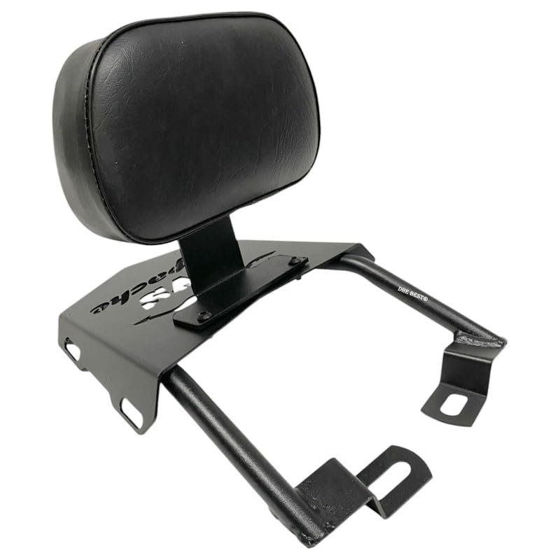 Dhe Best DBA-01 Bike Bullet Harley Style Backrest Support Pillion Black Cushion with Carrier Backrest Black for ROAYL ENFIELD MODELS