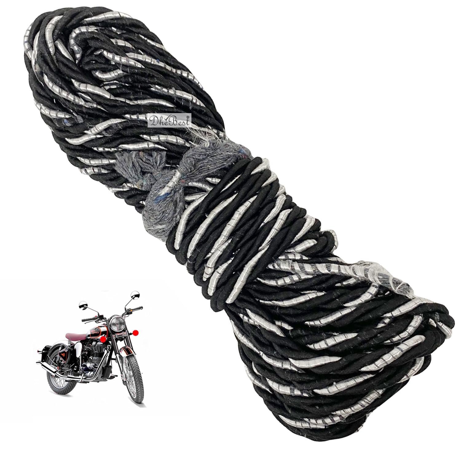Dhe Best Bike Bullet Black Leg Guard Rope (28 Meter) Strong and Heavy Legguard Rope Black Silver Compatible with RE Classic 350