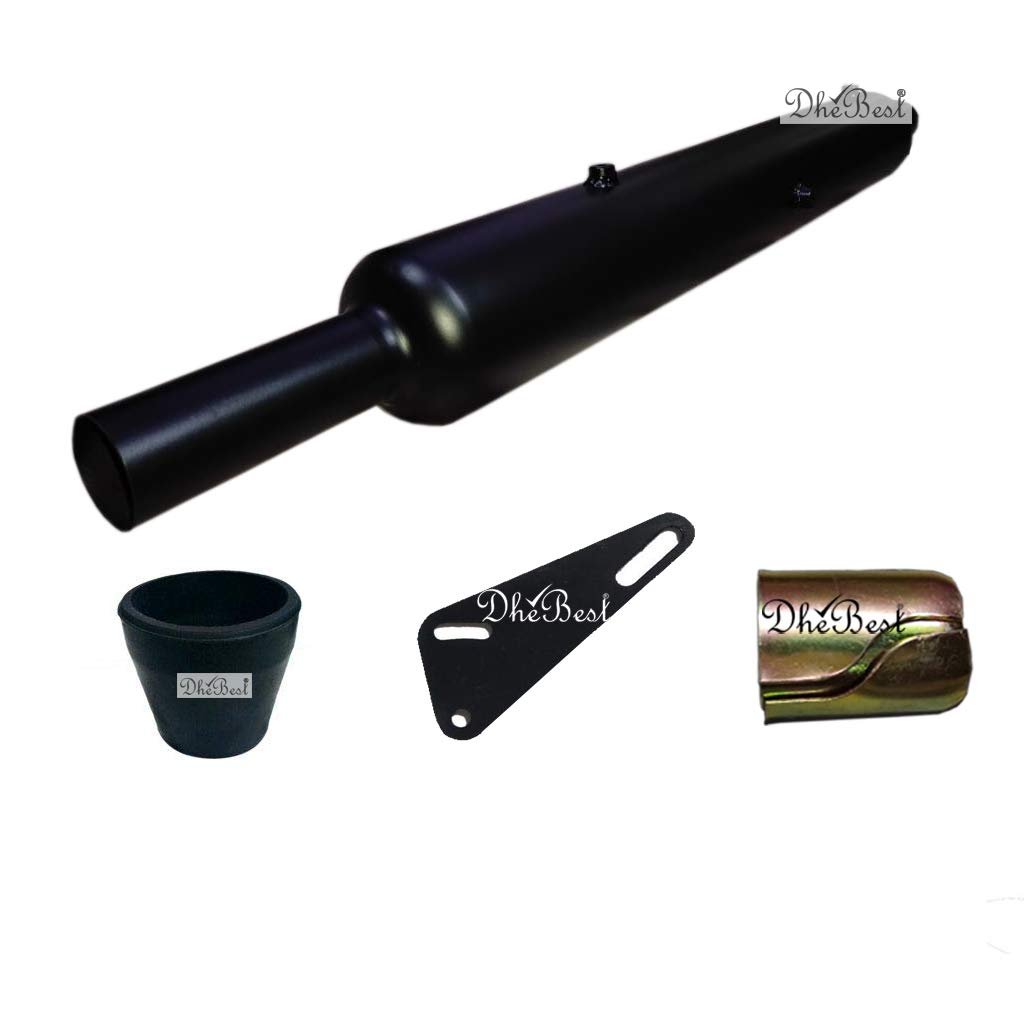 Dhe Best Bike Bullet Silencer Exhaust Customized Long Bottle Punjab Dholki Thin Pipe Black with Zed Clamp Bush Only BS6 Model for RE Classic 350