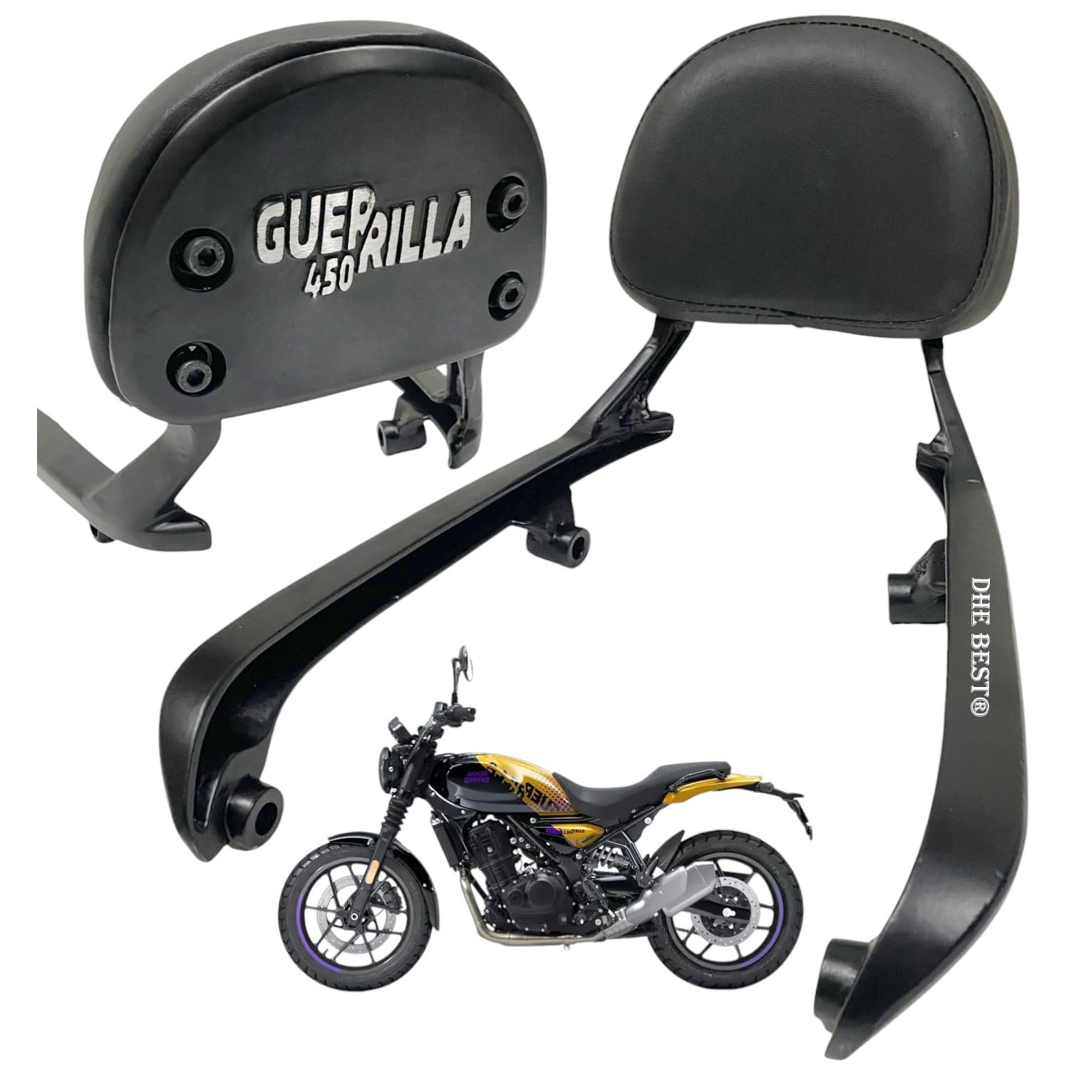 Dhe Best Bike Heavy Die cast Adjustable Cushion Back Rest/Backrest Black Suitable for RE Guerrilla 450