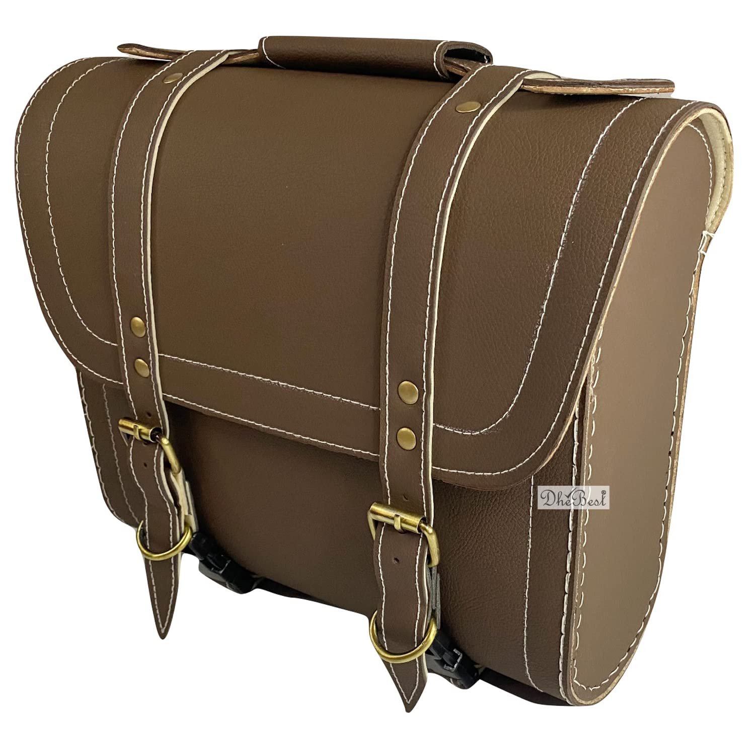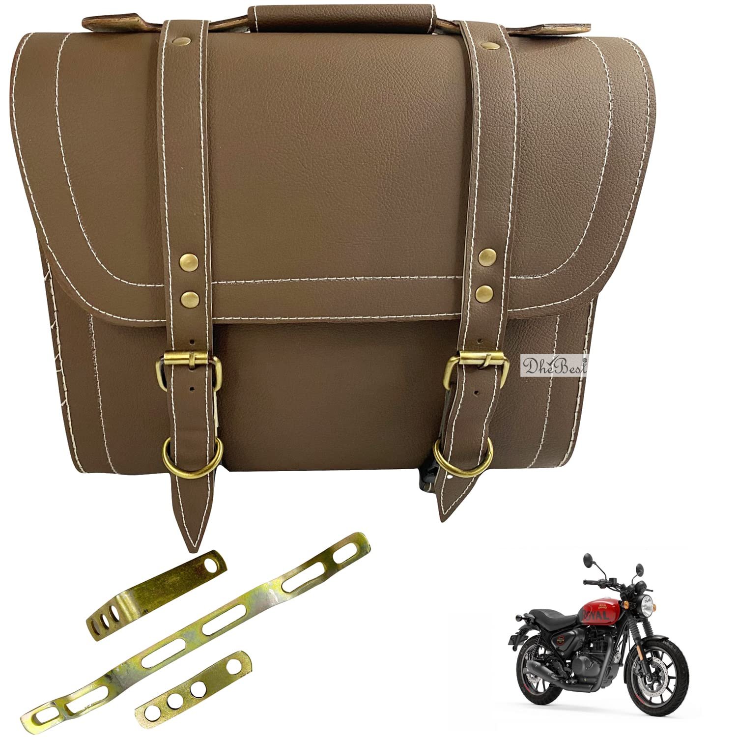 Dhe Best Bike Saddle Bag Waterproof Rectangle Side SaddleBag with Golden Buckle with Fitting Brown Compatible with RE MODELS