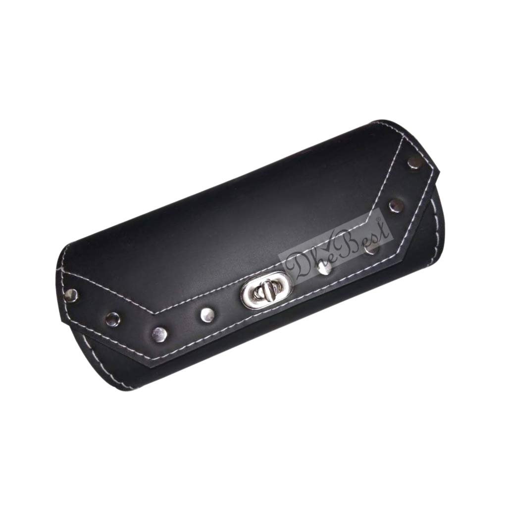 Dhe Best Faux Leather Bike Side/Rear Saddle Bag Round Style Tool Bag Storage Tool Pouch 2 Strap Closure Black for ROYAL ENDIRLD MODELS