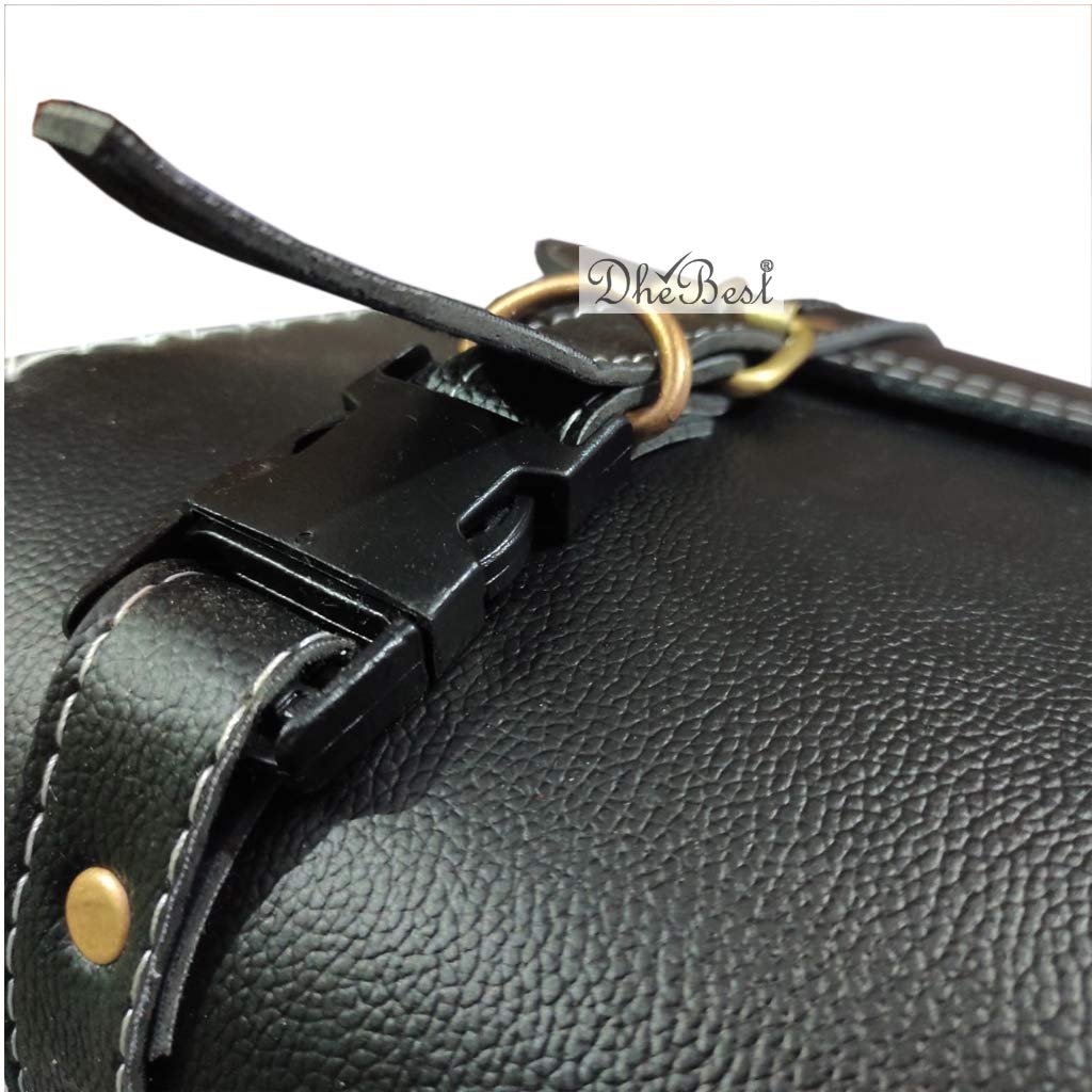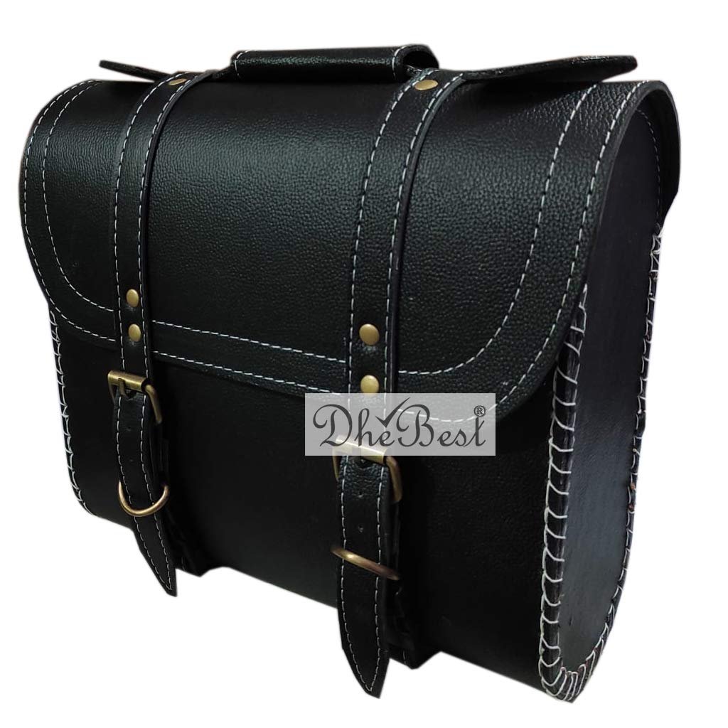Dhe Best Faux Leather Bike Side/Rear Saddle Bag Round Style Tool Bag Storage Tool Pouch 2 Strap Closure Black for ROYAL ENDIRLD MODELS