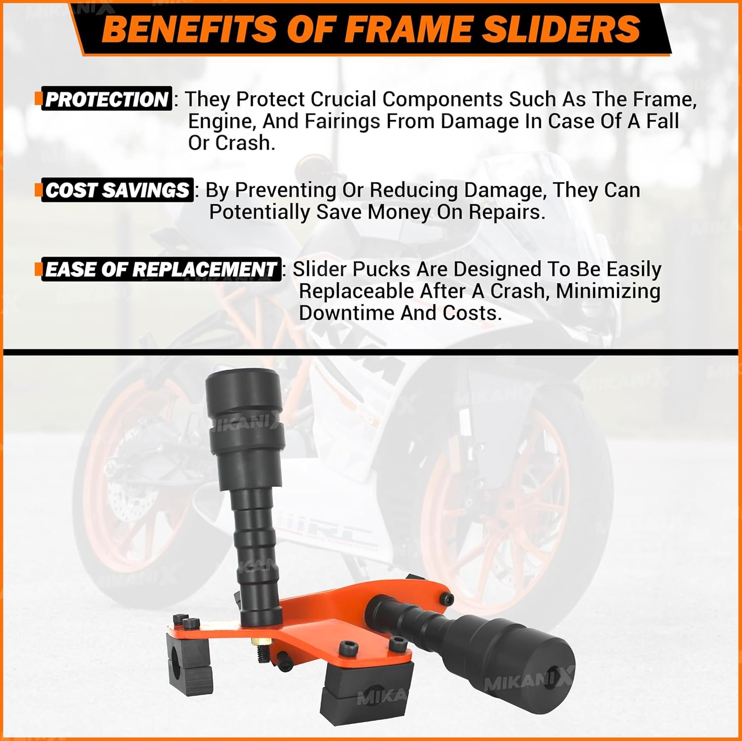 DHE BEST® Frame Slider Bracket | Bike Crash Guard Leg Protector Compatible With KTM RC Duke 125/200 / 250/390 (Orange)
