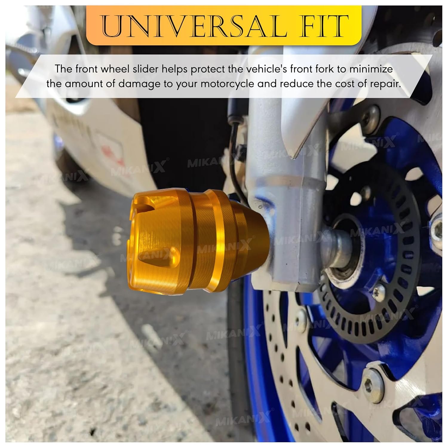 DHE BEST Universal Motorcycle Front Fork Slider | Wheel Frame Slider | Axle Protector Bike Crash Guard for All Bikes (Pack of 2) (Golden)